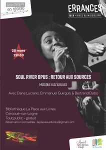 Pour Errances 2026, les rives du fleuve Mississippi seront au centre de cette programmation à laquelle prendront part les 9 bibliothèques du réseau Sud Retz Atlantique et l’École de Musique Sud Retz Atlantique, du 6 février au 22 mars.