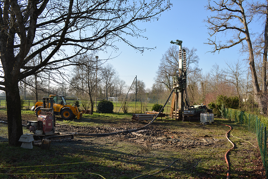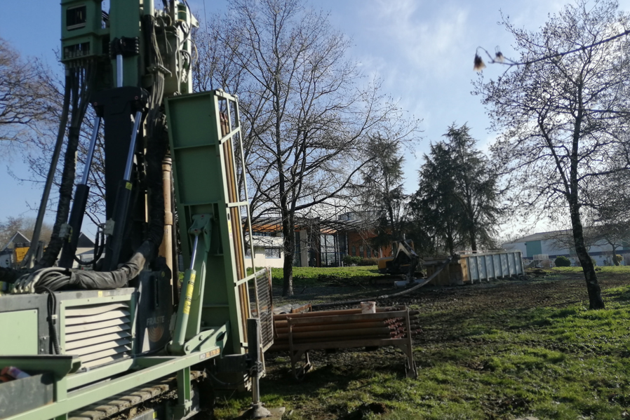 Un forage test de 200 m de profondeur a été réalisé, il a permis de définir la profondeur utile pour les 11 autres forages. C’est une première en Loire Atlantique pour le chauffage d’un équipement aquatique.