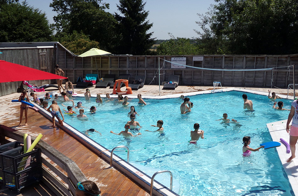 - Un bassin ludique de 105 m² : sa profondeur de 60cm à 1.20m, en pente douce, constitue également un bel espace ludique (geyser, nage à contre-courant, canon à eau, 6 jets massants), eau à 29°.