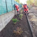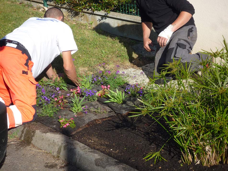 - L’entretien à 80 % qui comprend la tonte, la taille de haies et d’arbustes, l’entretien des bassins d’orages, le désherbage manuel des massifs et le ramassage des feuilles mortes mais aussi l’arrosage des massifs et du fleurissement ainsi que l’entretien des systèmes d’arrosage automatique et l’entretien des terrains de foot et cimetières.
