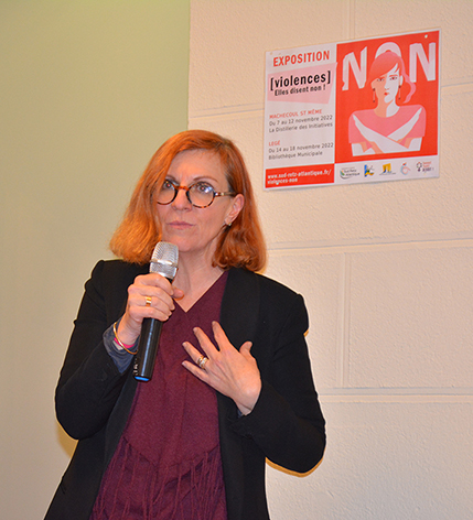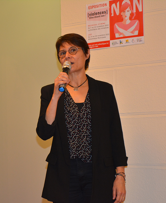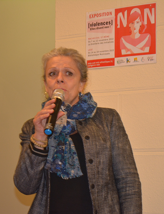 Suite à cette formation, des outils de communication ont été créés afin que toutes les communes puissent afficher des informations personnalisées et locales. Chaque mairie, qui a participé, a mis en place un espace confidentiel pour accueillir les femmes qui ont besoin de se confier. Un groupe inter-CCAS a été créé, pour que les agents du terrain puissent échanger sur les situations rencontrées et s’entraider, car dans la plupart de nos communes, les agents CCAS sont seules, et dans certaines communes, il n’y a pas d’agent dédié. Enfin, la commission – en collaboration avec les associations Femmes TouteS Debout et Renouv’Ailes – a mis en place cette exposition « Violences. Elles disent non ! », ainsi que plusieurs temps forts sur les villes de Machecoul St Même et Legé. L’exposition est à disposition du grand public et des scolaires accompagnés pour sensibiliser le plus grand nombre à ce sujet.