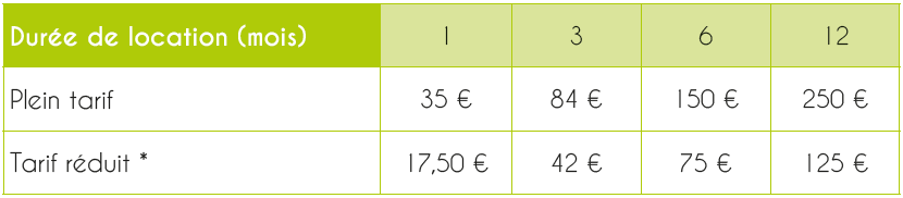 * Un tarif réduit est prévu pour les demandeurs d’emploi, allocataires du RSA, étudiants et seniors bénéficiaires de l’ASPA (sur présentation des justificatifs).